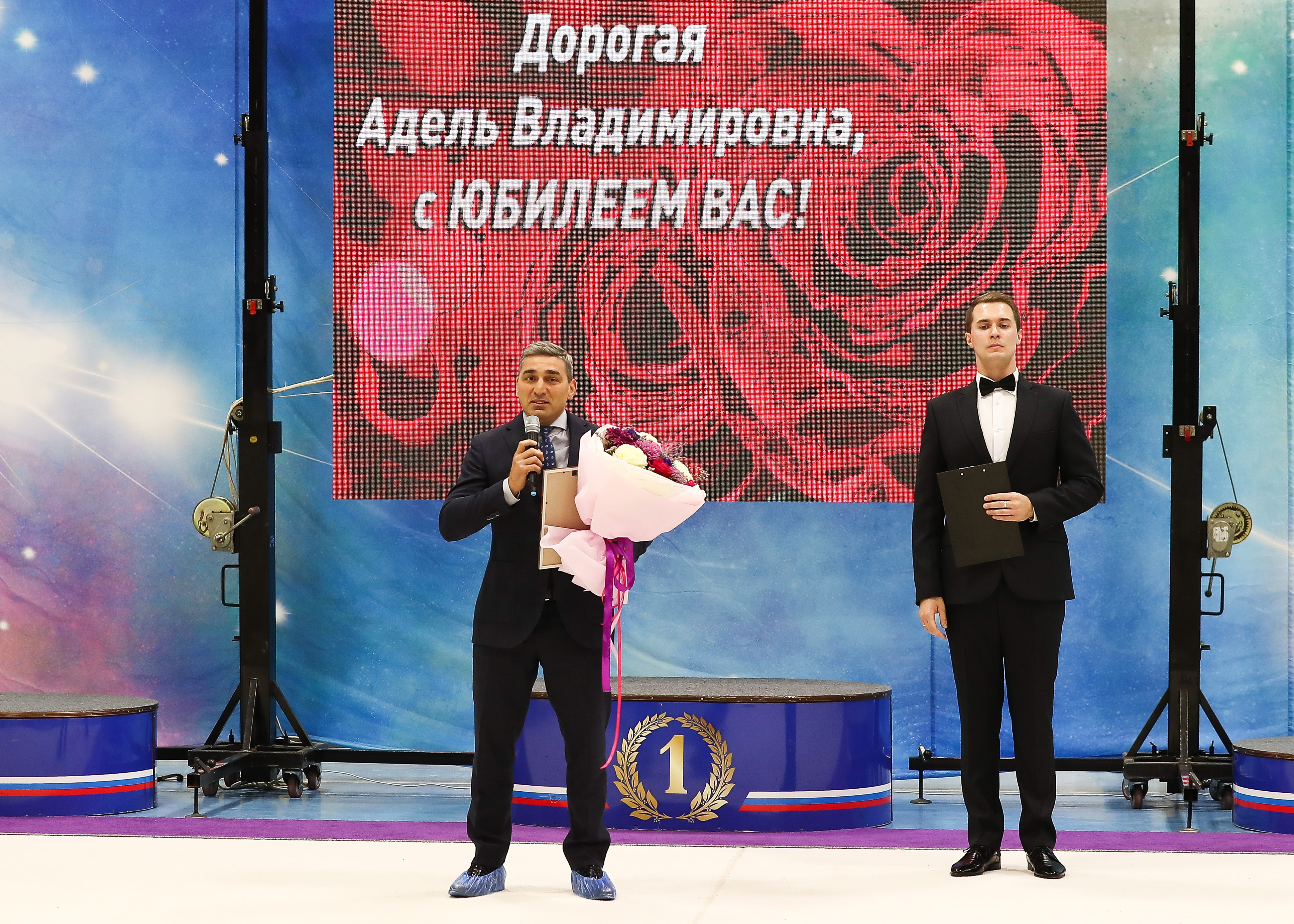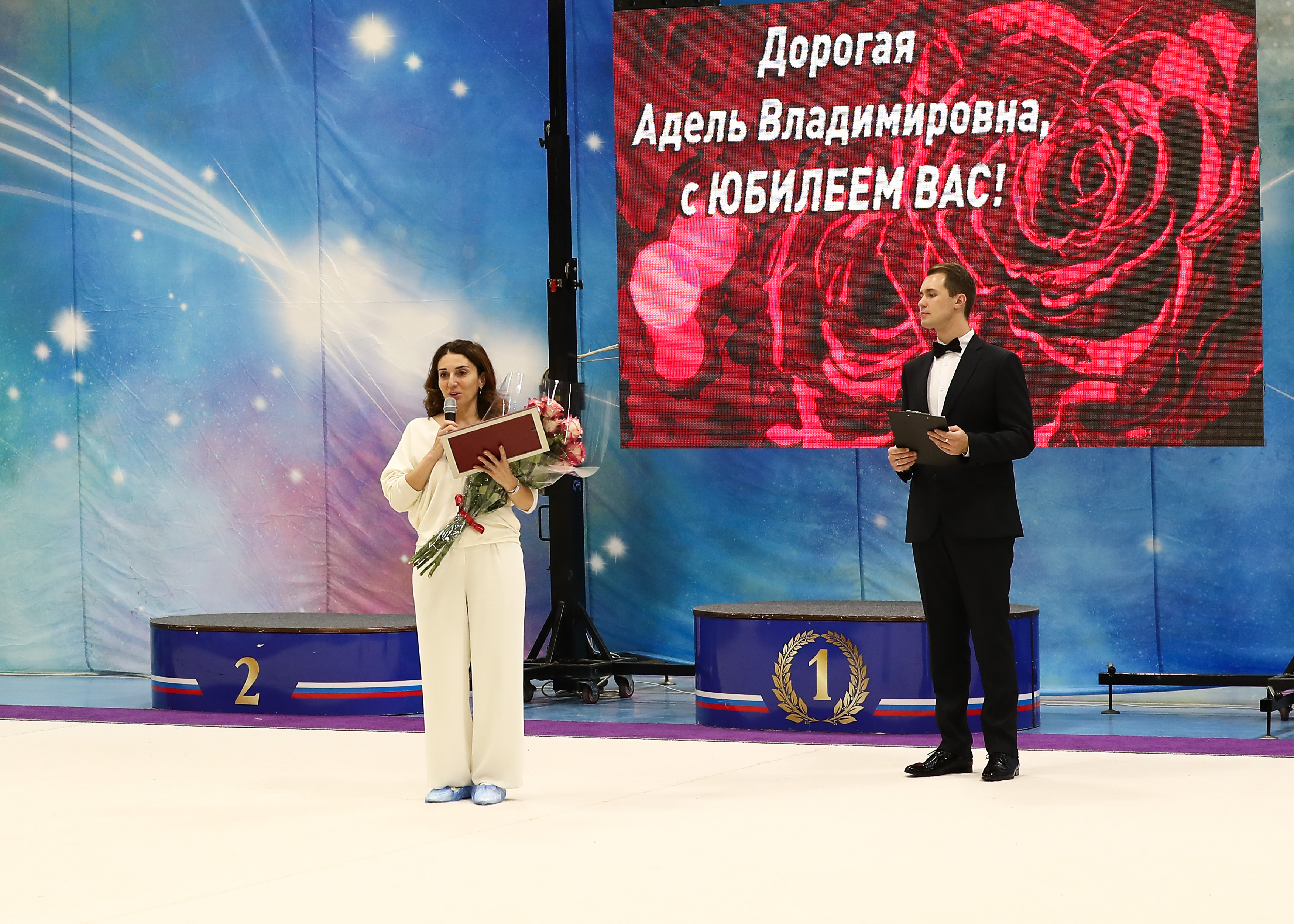 На торжественном мероприятии, посвящённом юбилею, Адель Владимировну поздравляли заместитель министра спорта Ростовской области Гадарова Светлана Арменаковна, президент Федерации художественной гимнастики Ростовской области Иванова Елена Владимировна, президент Федерации спортивной борьбы Ростовской области Самургашев Вартерес Вартересович.